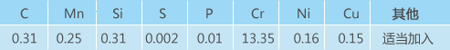 化學(xué)成分: 出廠(chǎng)狀態(tài)及參考硬度:退火HB230